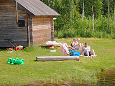 Fin badplats med brygga, lekplats, raststuga och grillplats. På helgerna kan du ofta köpa glass.